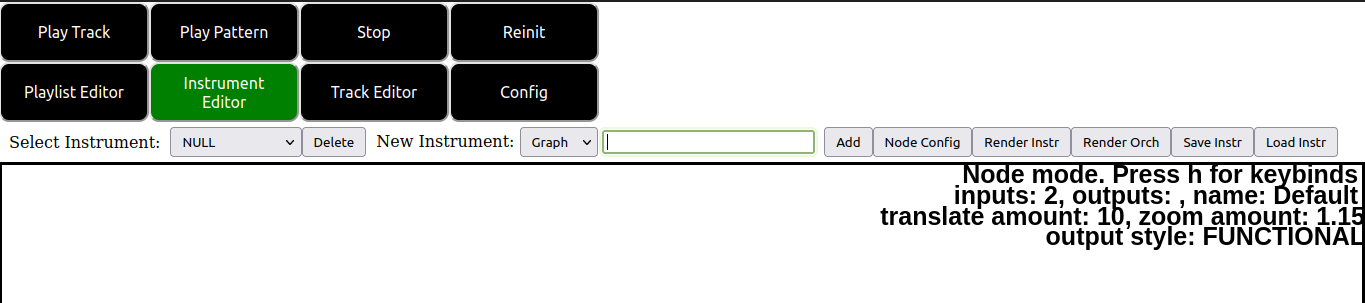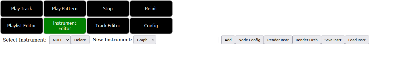 On clicking the instrument editor tab button at the top of the screen you are presented with the following user interface: